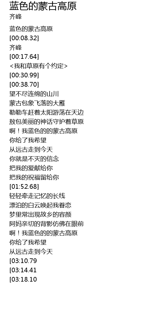 蓝色的蒙古高原lan Se De Meng Gu Gao Yuan Lyrics Follow Lyrics